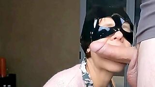 Mature woman sucking with eye mask